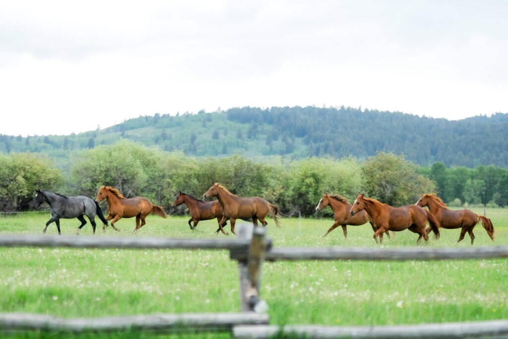 The horses run through designated pastures safely away from guests but close enough for dramatic impact. Professional ranch hands ensure everything happens smoothly and safely for both horses and guests.